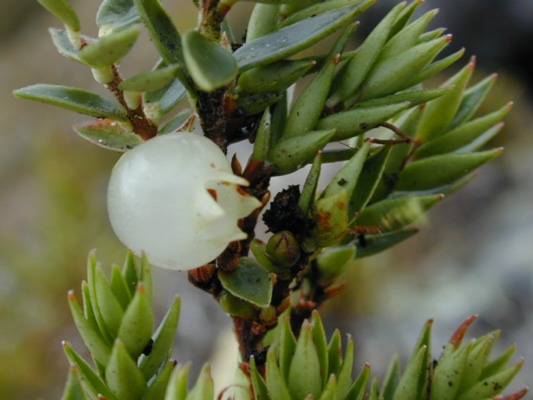 Disterigma alaternoides (Kunth) Nied. Esta especie se diferencia por crecer como un arbusto erecto de flores blancas