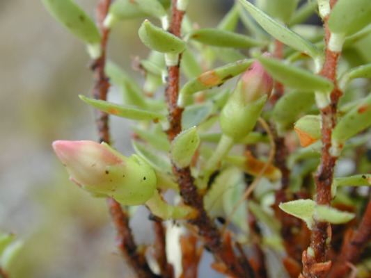 Disterigma empetrifolium (Kunth) Drude Esta especie es muy común en laderas rocosas y suelos húmedos. Generalmente crece de manera muy compacta y forma céspedes sobre las rocas.